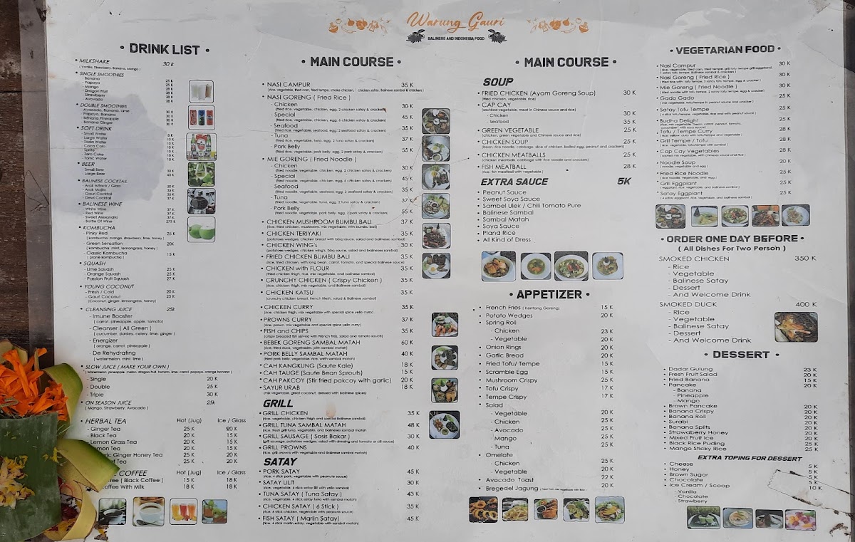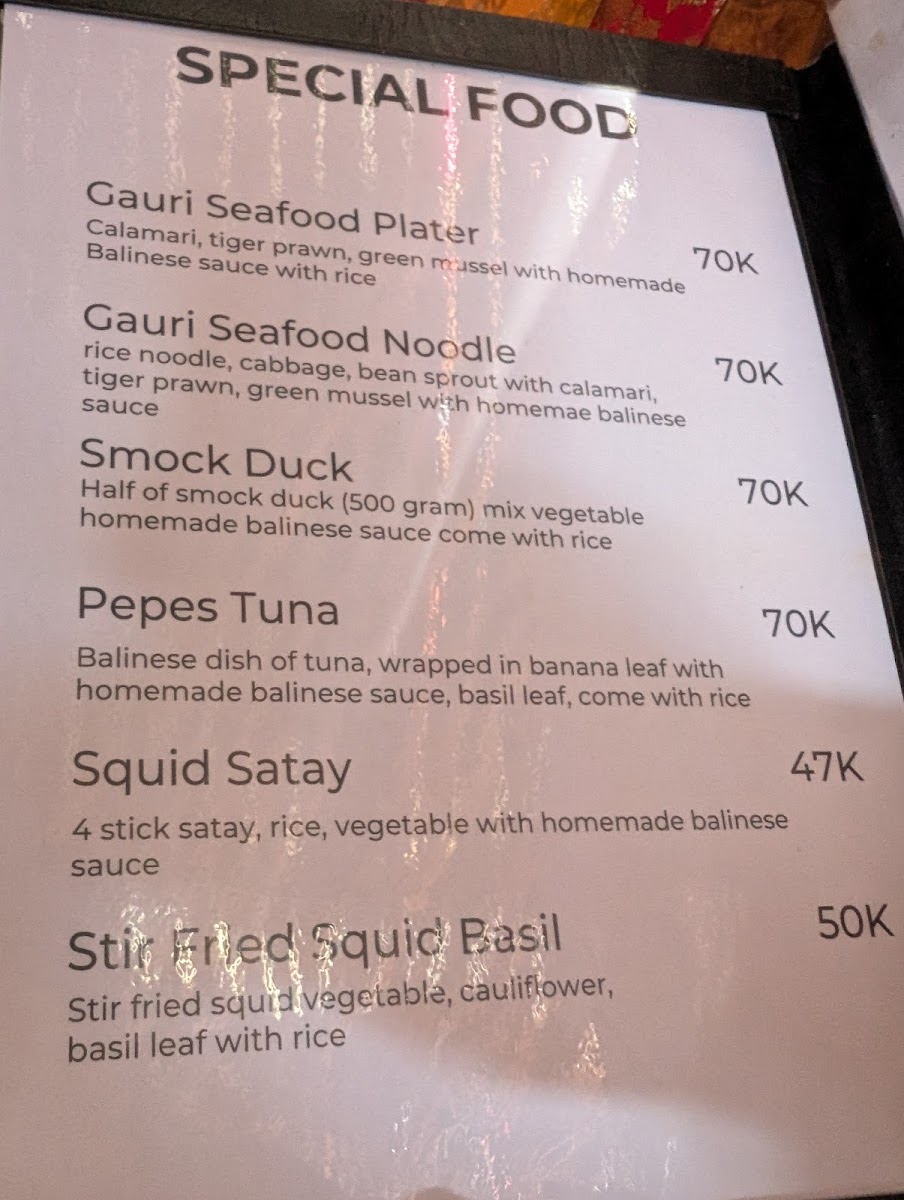 Warung Gauri Menu