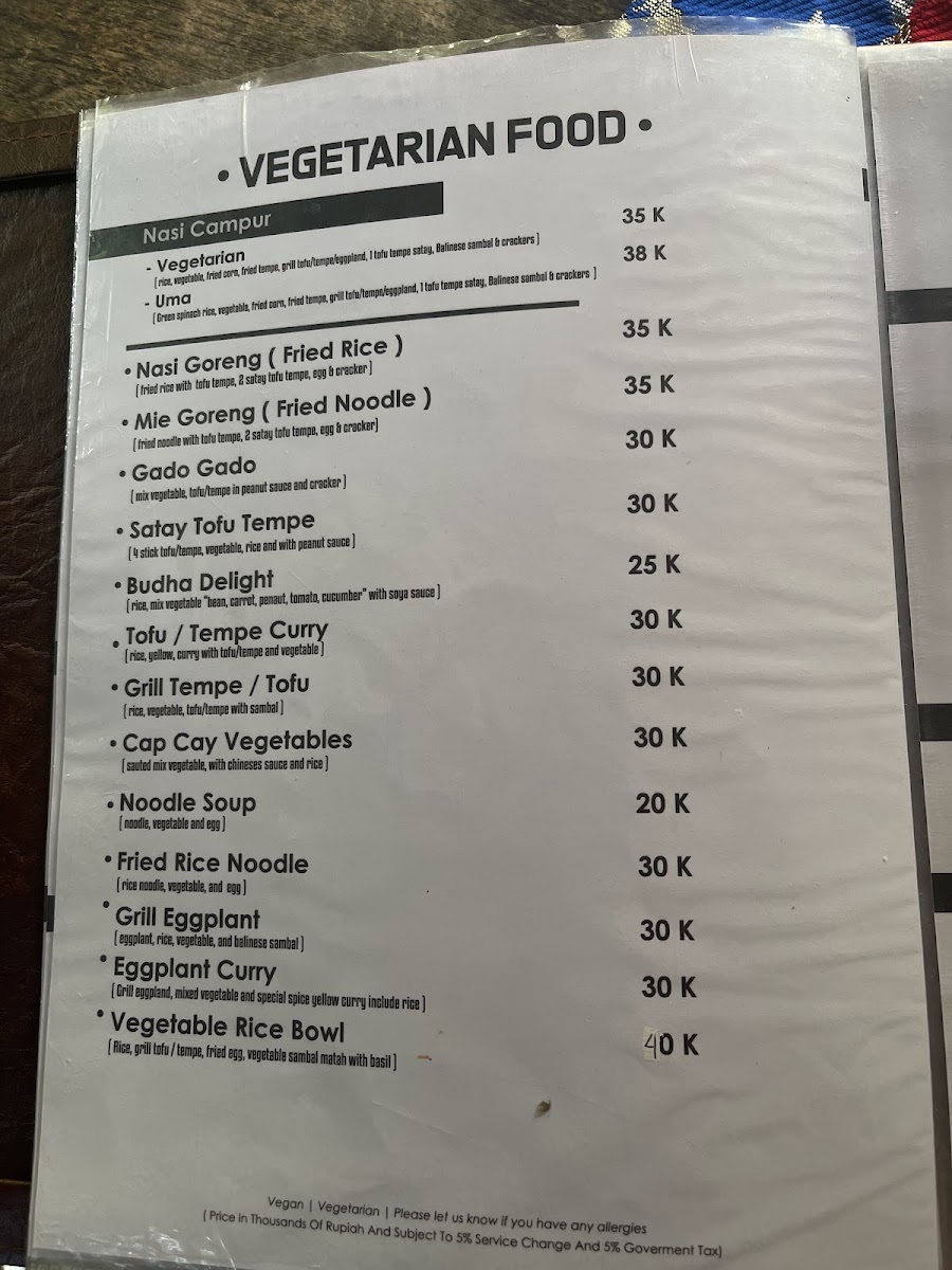 Options like nasi campur vegetarian, chicken curry, and mango sticky rice reflect the traditional flavors of the region, pairing well with the warm, welcoming atmosphere of this tucked-away Ubud spot. Other dishes, including pancakes and onion rings, provide a familiar touch for those seeking something simple yet satisfying.