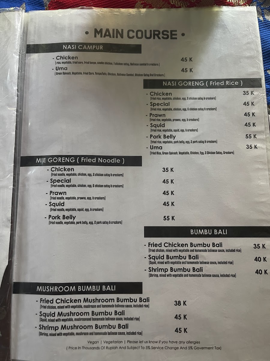 The menu at Warung Gauri offers a laid-back selection of Indonesian and Balinese favorites, perfect for casual meals throughout the day. Guests can enjoy comforting satays alongside light bites like spring rolls or refreshing drinks such as dragon fruit smoothies. The variety invites relaxed dining, whether it’s a midday break or an easy evening gathering.